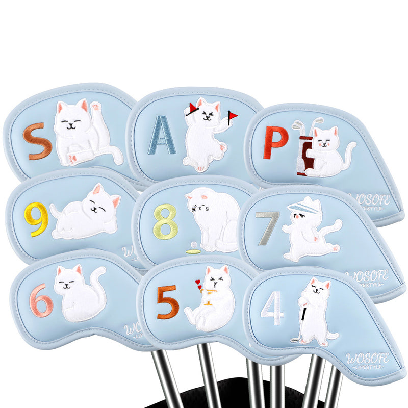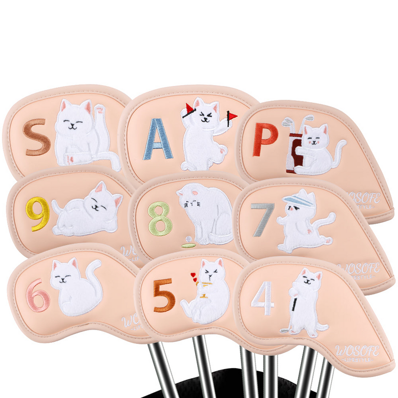 • Golf Headcover,PU Leather Iron Head Cover 9 Pcs/Set Waterproof Durable Macaron Color Palette Embroidery Design