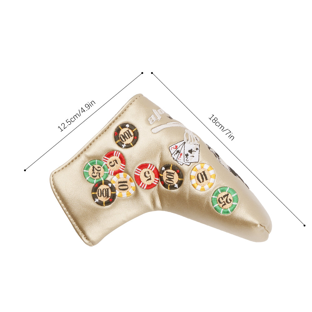 Golf Club Head Cover Poker Skull King Weight Design Golf Blade Putter Cover Golf Headcover Premium PU Leather High-density Embroidery Headcover Fits Most of Putters Club